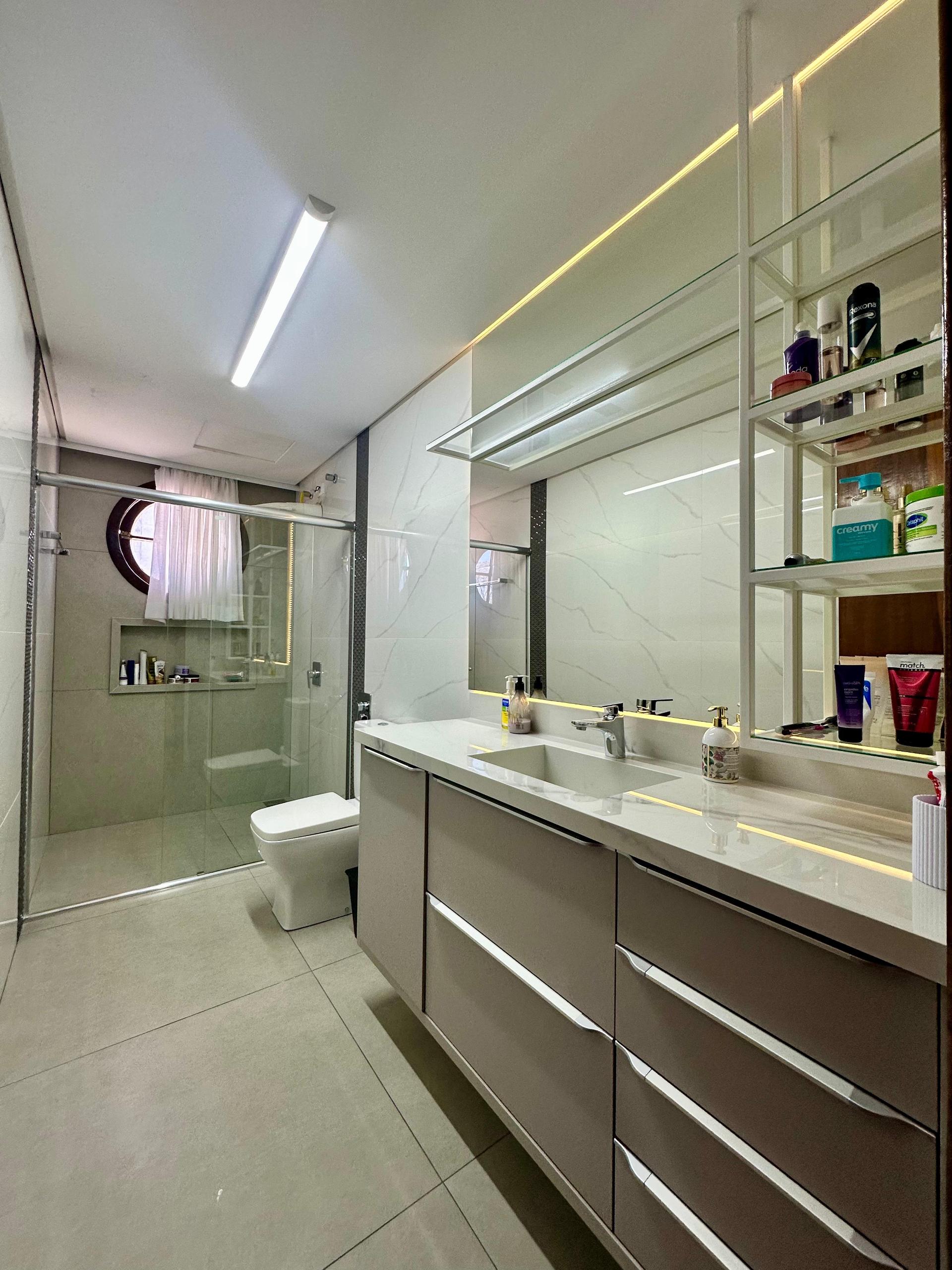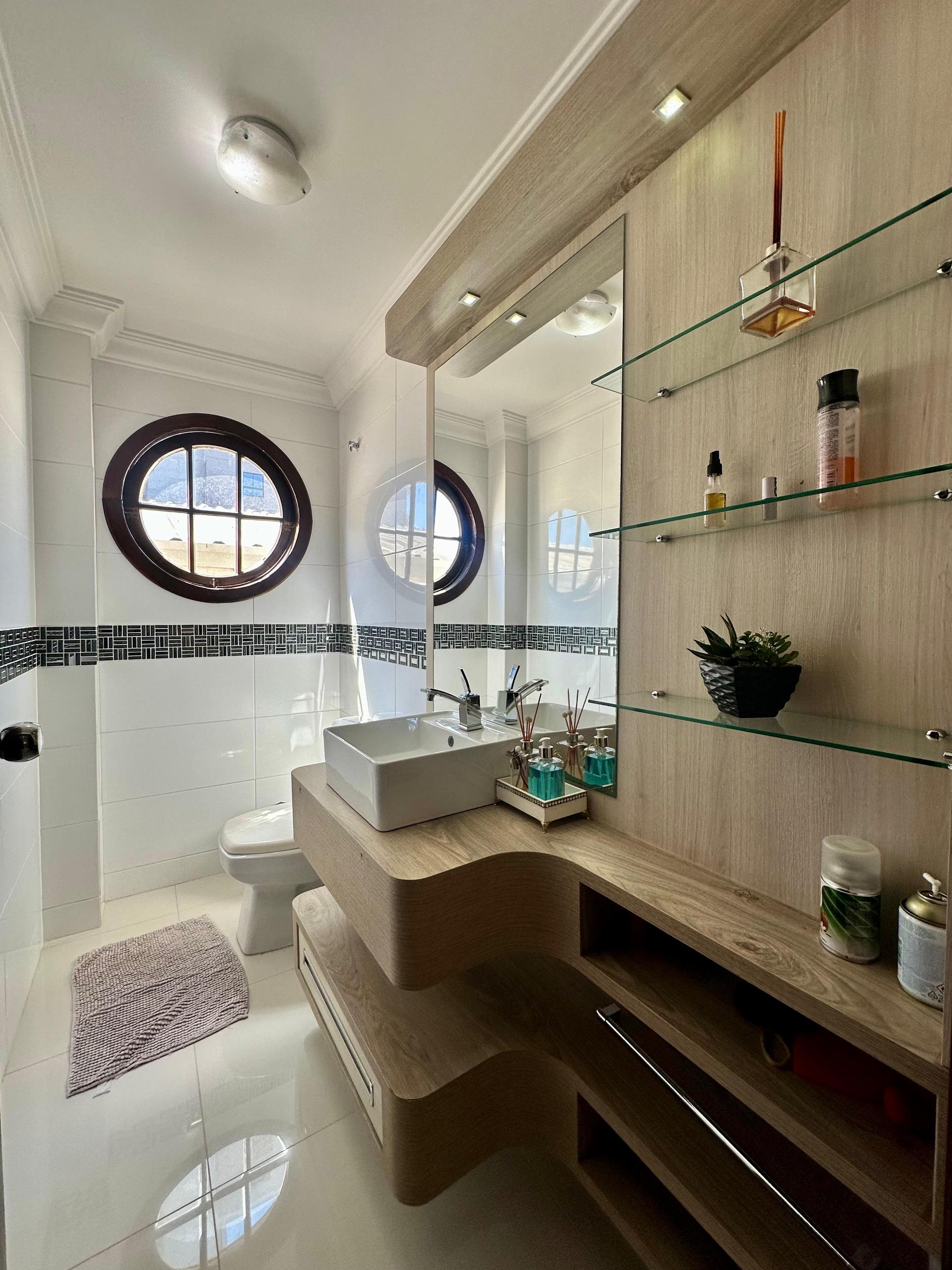- Piso porcelanato em todo pavimento inferior e nas áreas molhadas
