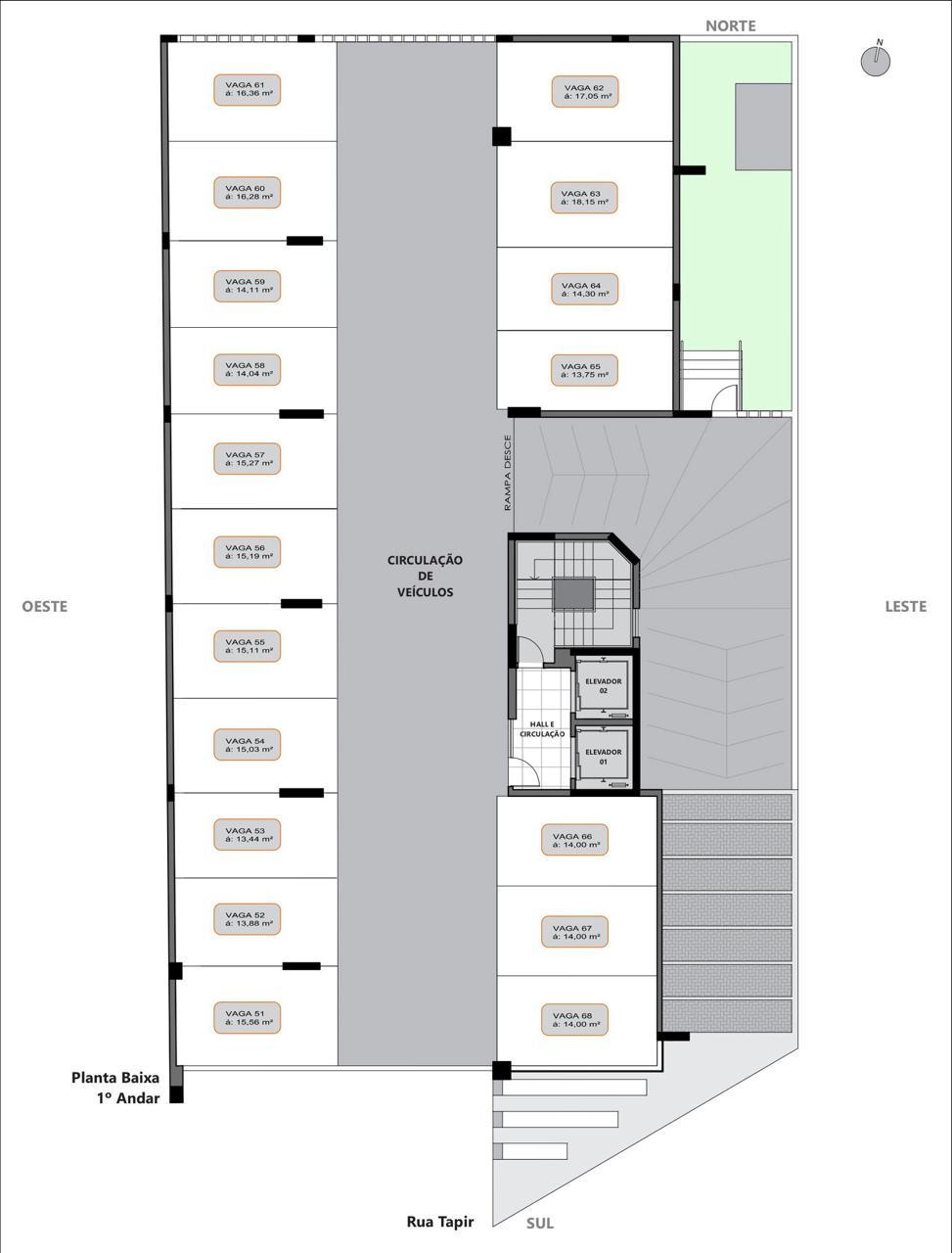 Observação: A metragem poderá sofrer alterações de acordo com a vaga de garagem.