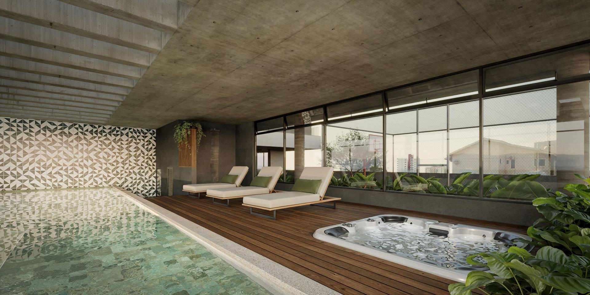 - Piscina aquecida com cobertura, prainha e hidromassagem