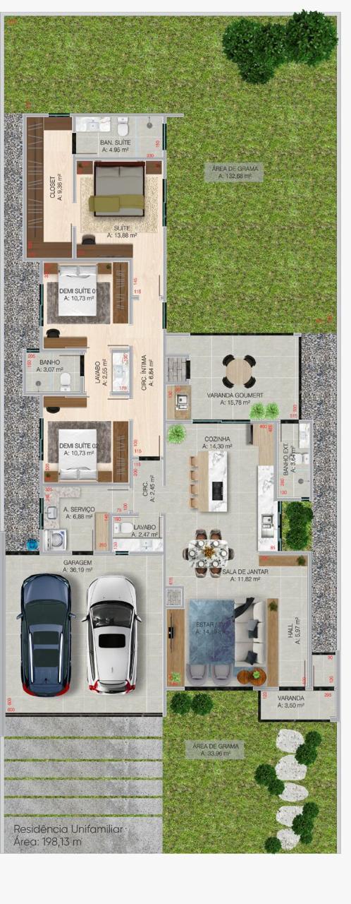 Área construída: 198,13 m²