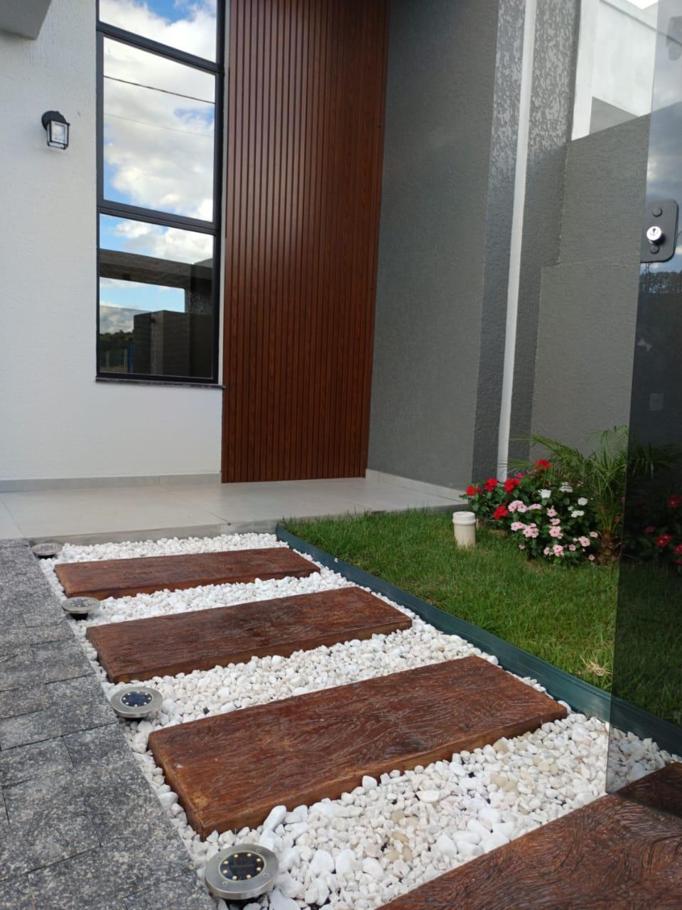- Jardim externo e entrada social com LED