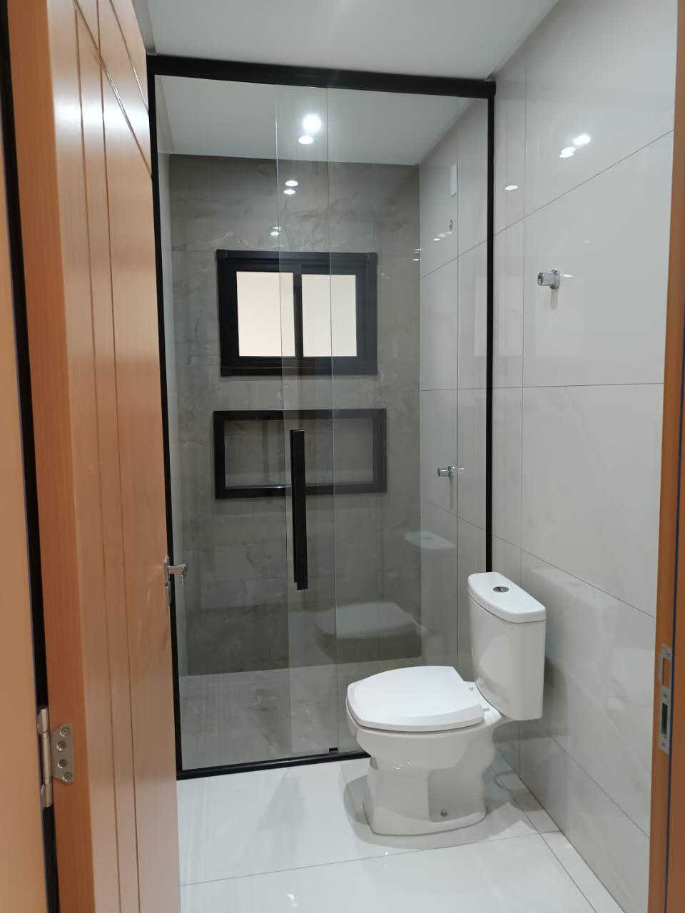 - Box de vidro nos banheiros até o teto