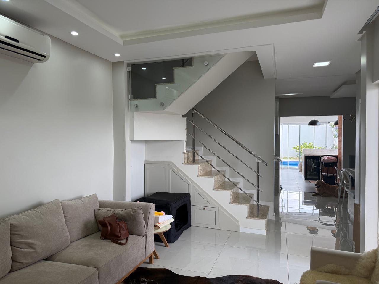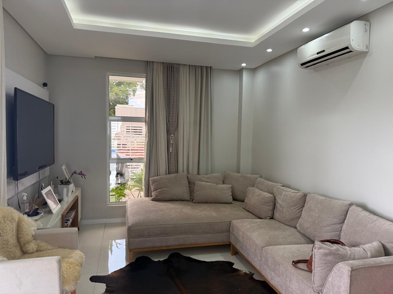 - Ar condicionado na sala de estar, área gourmet e suíte